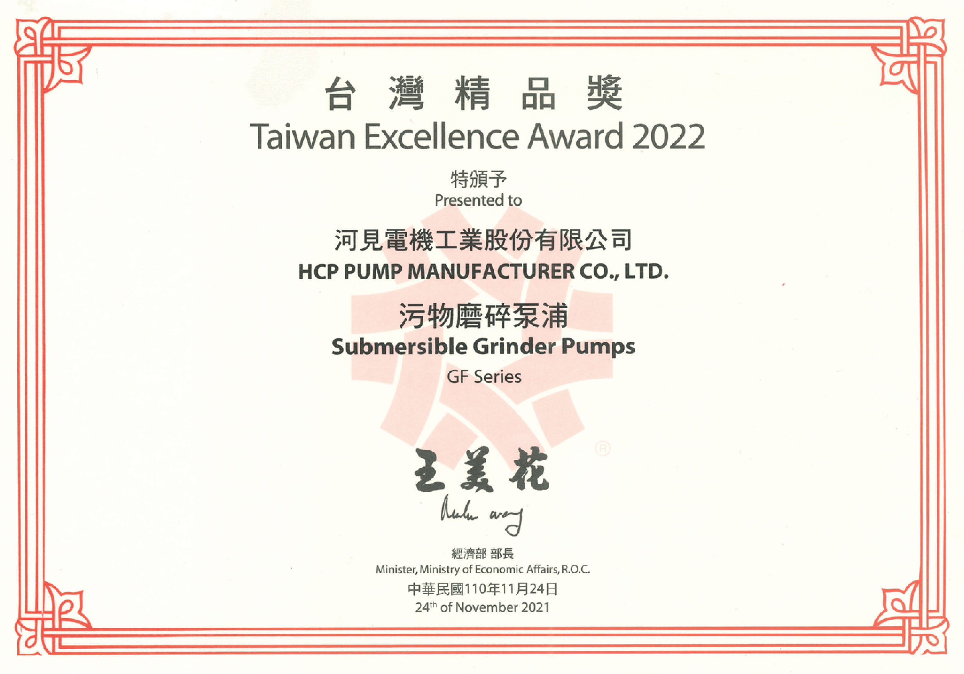 We are delighted to announce that HCP' s GF series -submersible Grinder Pumps has won 30th Taiwan Excellence Award!